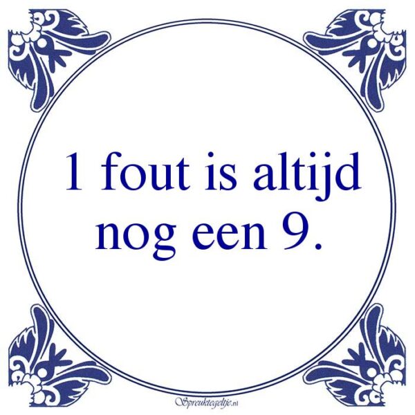 Bestel hier de spreuk: 1 fout is altijd nog een 9.