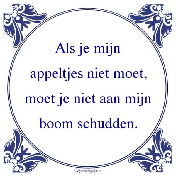Bestel hier de spreuk: Als je mijn appeltjes niet moet, moet je niet aan mijn boom schudden.