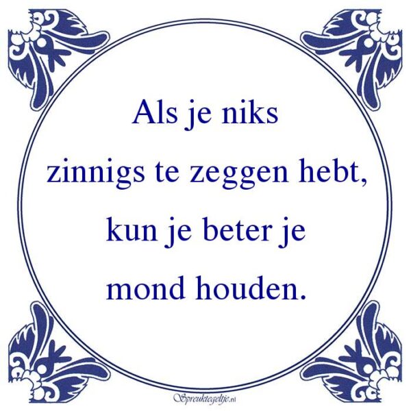 Bestel hier de spreuk: Als je niks zinnigs te zeggen hebt, kun je beter je mond houden.