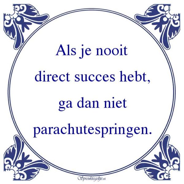 Bestel hier de spreuk: Als je nooit direct succes hebt, ga dan niet parachutespringen.