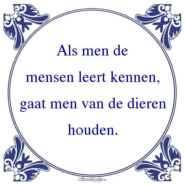 Bestel hier de spreuk: Als men de mensen leert kennen, gaat men van de dieren houden.