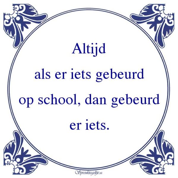 Bestel hier de spreuk: Altijd als er iets gebeurd op school, dan gebeurd er iets.