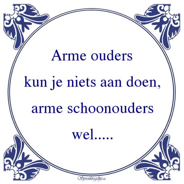 Bestel hier de spreuk: Arme ouders kun je niets aan doen, arme schoonouders wel…..