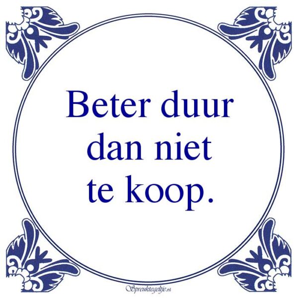 Bestel hier de spreuk: Beter duur dan niet te koop.
