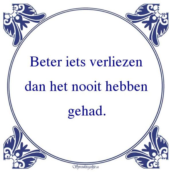 Bestel hier de spreuk: Beter iets verliezen dan het nooit hebben gehad.