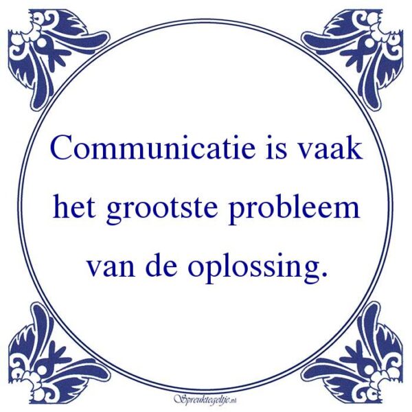 Bestel hier de spreuk: Communicatie is vaak het grootste probleem van de oplossing.