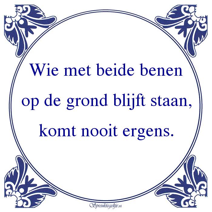 Bestel hier de spreuk: Wie met beide benen op de grond blijft staan, komt nooit ergens.