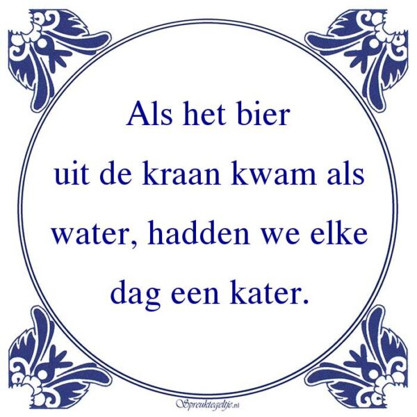 Bestel hier de spreuk: Als het bier uit de kraan kwam als water, hadden we elke dag een kater.