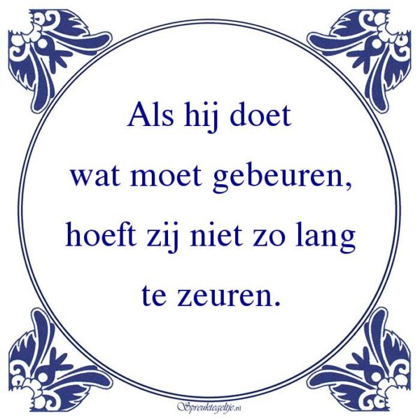 Bestel hier de spreuk: Als hij doet wat moet gebeuren, hoeft zij niet zo lang te zeuren.