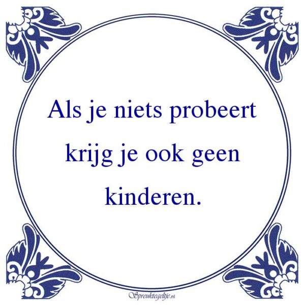 Bestel hier de spreuk: Als je niets probeert krijg je ook geen kinderen.
