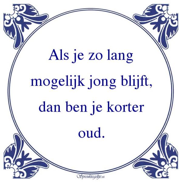 Bestel hier de spreuk: Als je zo lang mogelijk jong blijft, dan ben je korter oud.