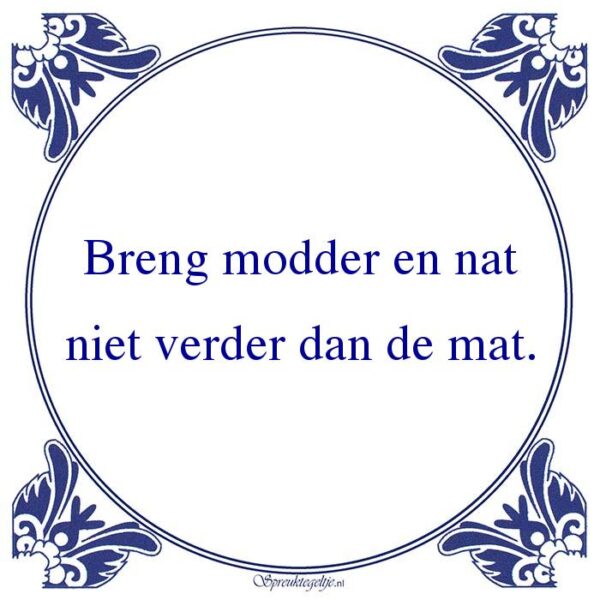 Bestel hier de spreuk: Breng modder en nat niet verder dan de mat.