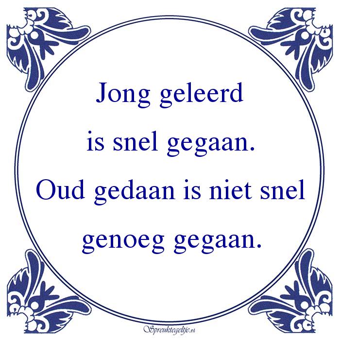 Bestel hier de spreuk: Jong geleerd is snel gegaan. Oud gedaan is niet snel genoeg gegaan.