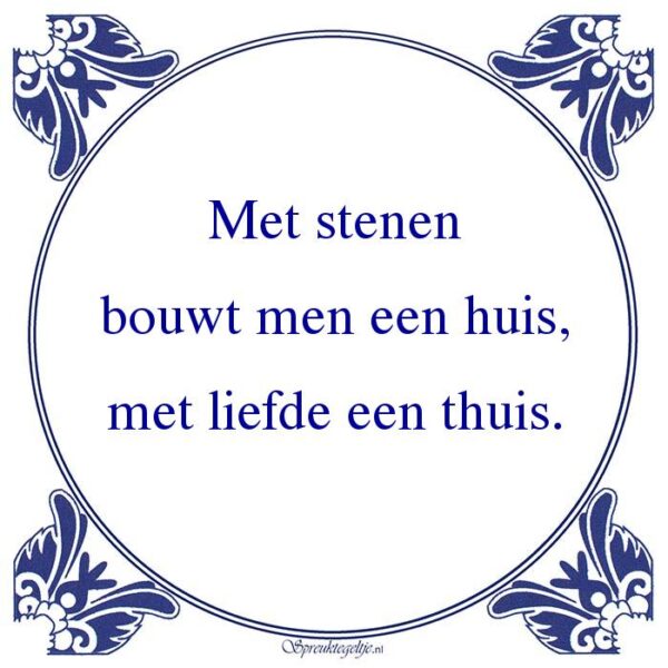 Bestel hier de spreuk: Met stenen bouwt men een huis, met liefde een thuis.