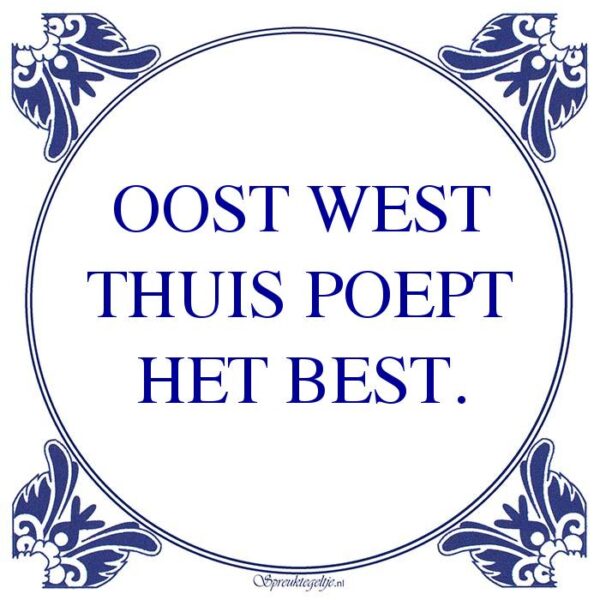 Bestel hier de spreuk: OOST WEST THUIS POEPT HET BEST.