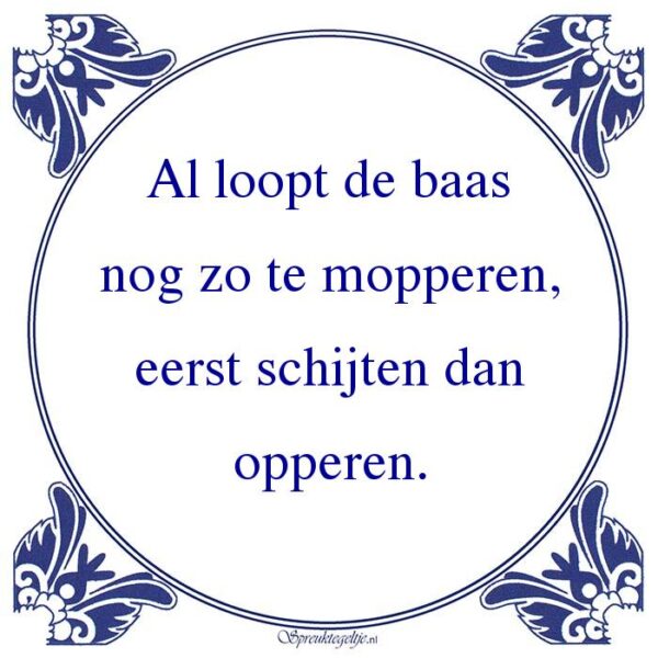 Bestel hier de spreuk: Al loopt de baas nog zo te mopperen, eerst schijten dan opperen.