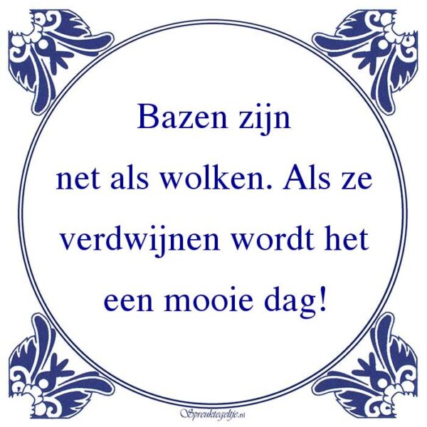 Bestel hier de spreuk: Bazen zijn net als wolken. Als ze verdwijnen wordt het een mooie dag!