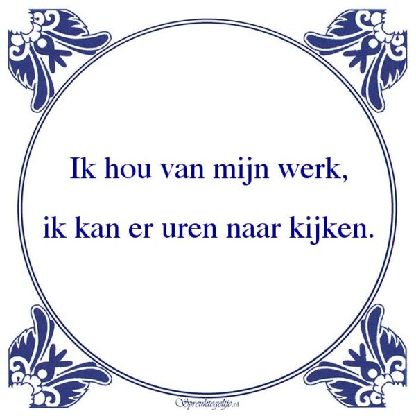 Bestel hier de spreuk: Ik hou van mijn werk, ik kan er uren naar kijken.